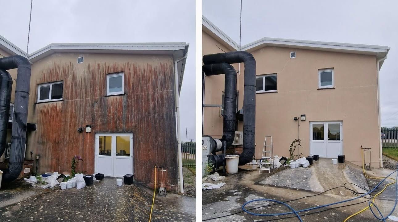 Render cleaning by HJC Cleaning and Property Maintenance – we gently remove algae, dirt, and stains using a soft wash method with eco-friendly solutions, restoring your walls to a like-new finish without damage. Clean, bright, and refreshed!